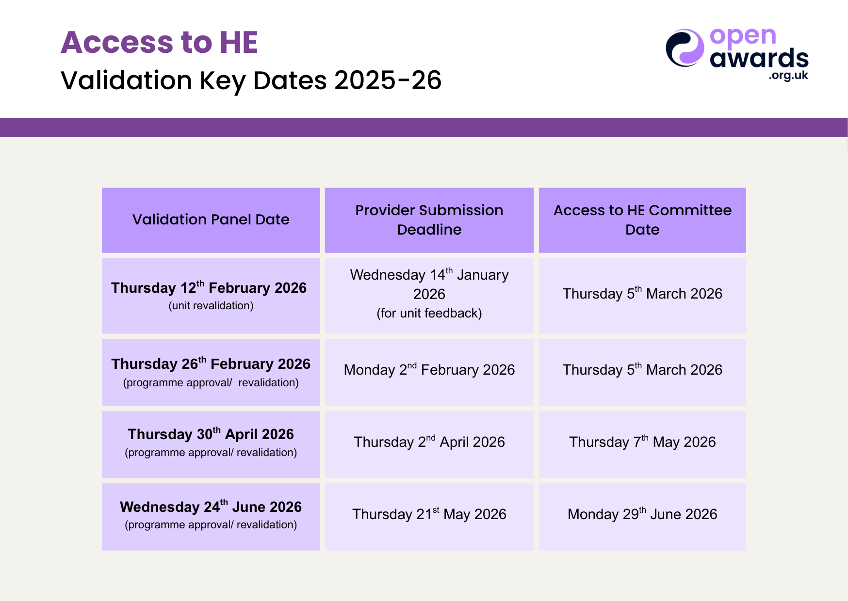 Key Validation Dates 2025-2026